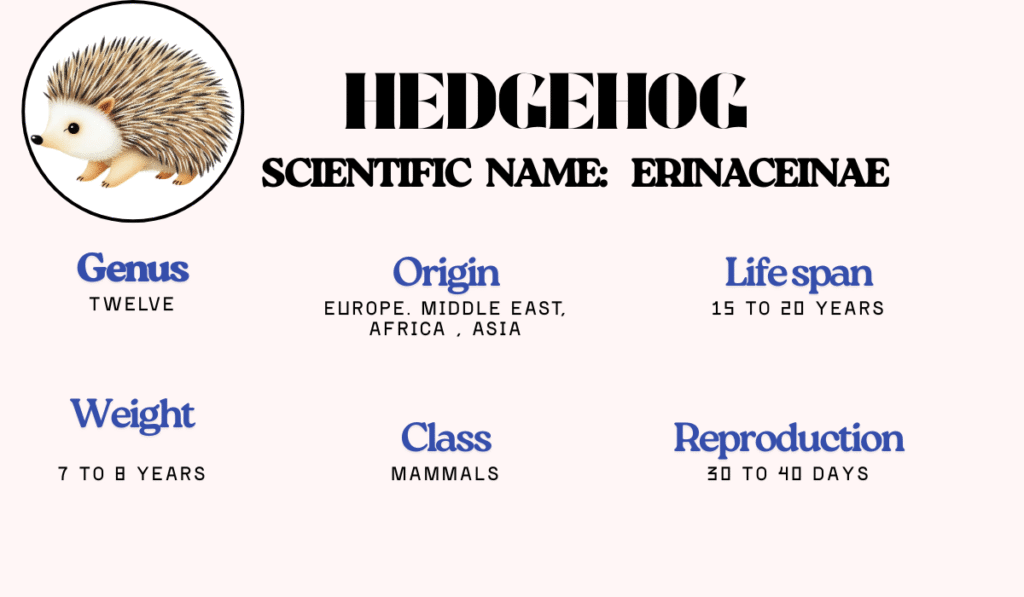 A hedgehog is a small mammal that differs from other animals, as they have spines or quills on their skin. In contrast, hedgehogs have hard spikes on their bodies. Made of the same stuff as our nails are. Hedgehogs are classified based on the shape and pattern of their spikes, skull, and ear length morphology. A Hedgehog can be brown, black, or a variety of different shades. There are 17 recognized species of hedgehogs grouped into 5 genera. The 12 species of hedgehogs are widespread across these 5 genera (Europe, Africa, and Asia). African pygmy, four-toed, European, and Indian long-eared hedgehogs are commonly kept as pets.